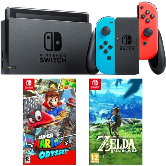 Nintendo Switch Renkli + Super Mario Odyssey Switch Oyun + Zelda Switch Oyun